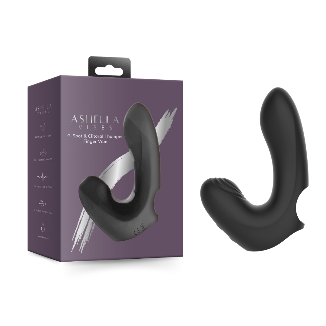 Experience ultimate blended pleasure with the Ashella Vibes G-Spot and Clitoral Thumper Finger Vibe. This innovative toy is designed to deliver dual stimulation — targeting both the G-spot and clitoris simultaneously for an unforgettable, full-bodied climax.