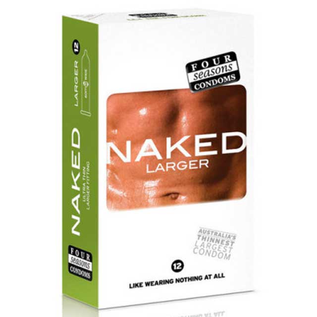 Manufactured to meet strict international standards (ISO 4074) and electronically tested for quality assurance, Four Seasons condoms deliver dependable protection you can trust. Transparent, non-spermicidal, and designed for a more natural experience, NAKED Larger condoms combine comfort, safety, and performance.
